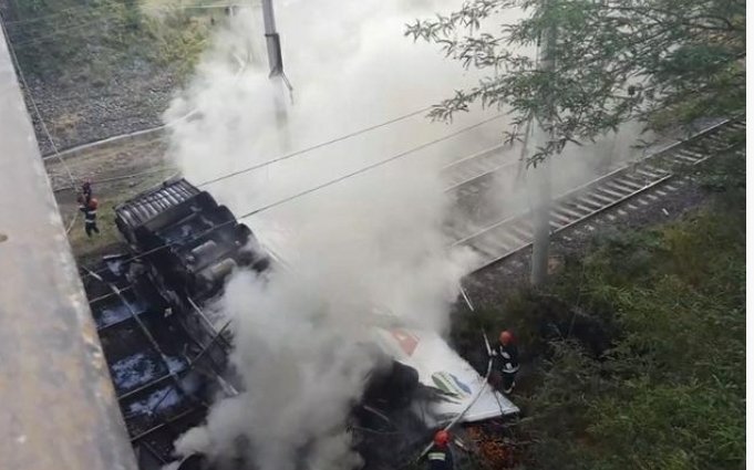 სიმაღლიდან გადავარდნილ ავტომობილს ცეცხლი გაუჩნდა.