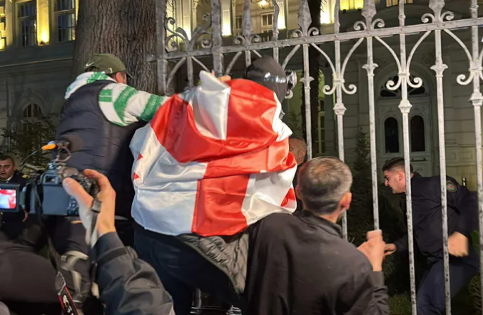 აქციის მონაწილეებმა ათონელის საპრეზიდენტო სასახლის ჭიშკარი შეანგრიეს – ადგილზე დაპირისპირებაა