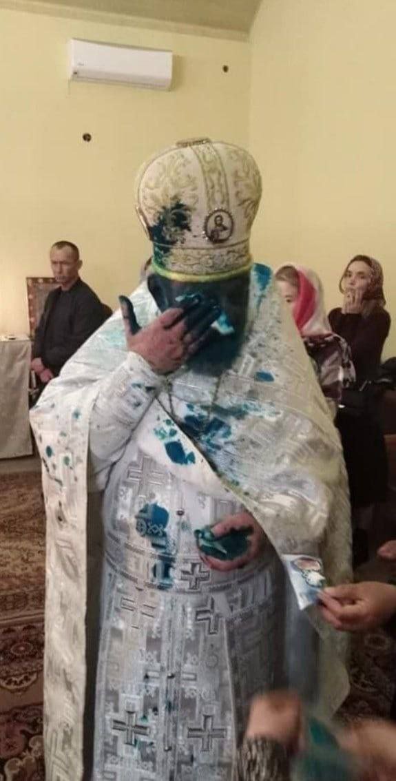 მოსკოვის საპატრიარქოს ერთ-ერთ წარმომადგენელს აქტივისტებმა სახეში ბრილიანტის მწვანე შეასხეს