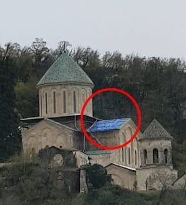 თან ყველაზე დიდი საფრთხე საიდანაც მოდის, რა ნაწილშიც ყველაზე მეტად დაზიანდა ორიგინალური მხატვრობა -დასავლეთის მკლავი ისევ ლურჯი, მეორადი ტენტითაა დაფარული.