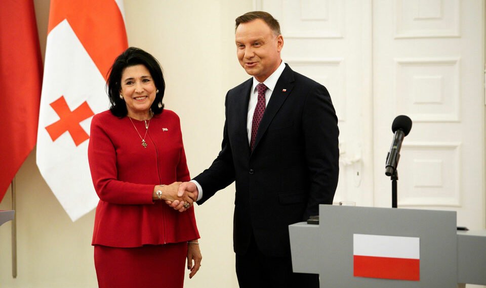 გმადლობთ, პრეზიდენტო ანჯეი დუდა საქართველოს გვერდში დგომისთვის პირადად და პოლონელი ერის სახელით ნებისმიერ დროს, განსაკუთრებით რეპრესიებისა და ტერორის ამ ბნელ საათებში, – ამის შესახებ საქართველოს პრეზიდენტი, სალომე ზურაბიშვილი სოციალურ პლატფორმა X-ზე წერს, სადაც მასსა და პოლონეთის პრეზიდენტს შორის გამართული შეხვედრის ამსახველ ფოტოს აქვეყნებს.