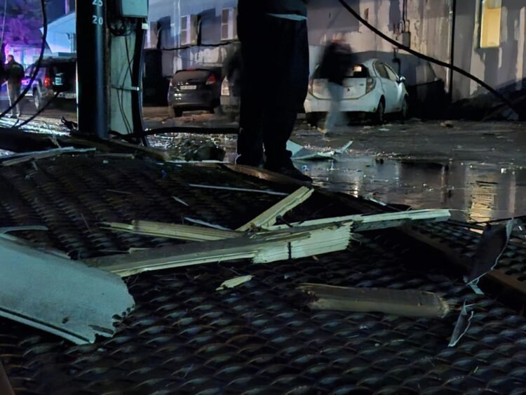 რკინის კონსტრუქციები, რომლებმაც ადგილობრივების საცხოვრებელი სახლის კარ–ფანჯარა დააზიანა, თამარაშვილის და მთაწმინდელის ქუჩებზე ყრია.