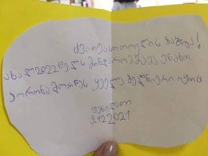 “ძვირფასო თოვლის ბაბუა! ახალ 2022 წელს მინდა, რომ მამა ვნახო. კორონა მორჩეს, ყველა ბედნიერი იყოს! შენი დათი!”