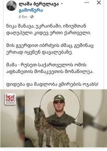 ,,ნიკა შანავა, უკრაინაში, იზიუმთან დაღუპული კიდევ ერთი ქართველი.