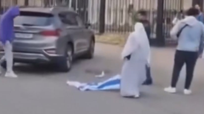 სოციალურ ქსელში გავრცელდა ვიდეოკადრები, სადაც ნაჩვენებია, რომ თბილისში, ვაჟა-ფშაველას გამზირზე, სამედიცინო უნივერსიტეტის შენობის ღობეზე აღმართული ისრაელის დროშა ჩამოხსნეს და ფეხით შედგნენ.