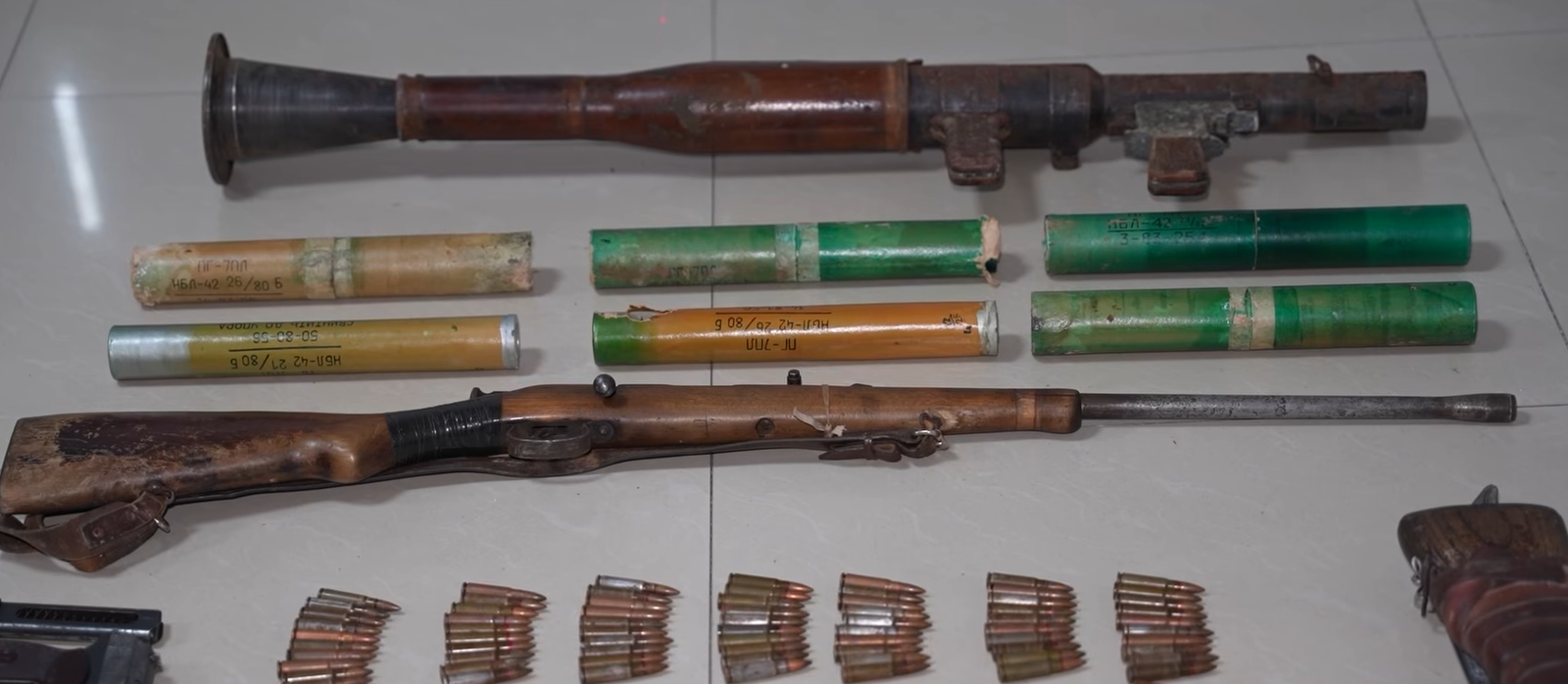 სამართალდამცველებმა დაკავებულების პირადი, საცხოვრებელი სახლის და დამხმარე სათავსოს ჩხრეკისას, ნივთმტკიცებად სხვადასხვა ტიპის ცეცხლსასროლი იარაღი და საბრძოლო მასალა ამოიღეს, მათ შორის: 2 ავტომატური ცეცხლსასროლი იარაღი, პისტოლეტი, მცირეკალიბრიანი შაშხანა, ყუმბარმტყორცნი, ხელყუმბარა და სხვადასხვა ტიპის ცეცხლსასროლი იარაღისთვის განკუთვნილი 777 ვაზნა.