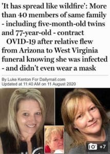 - ქალმა თავისი ოჯახის 40 ზე მეტი წევრი დააინფიცირა კოვიდ-19 ით., მან იცდა, რომ ვირუსი ჰქონდა, მაგრამ ამისდა მიუხედავად მაინც ჩაფრინდა ნათესავებთან და ნიღაბიც არ გაიკეთა.