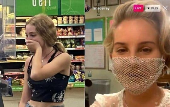 - მომღერალი ლანა დელ რეი წიგნის მაღაზიაში ორიგინალური ნიღბით