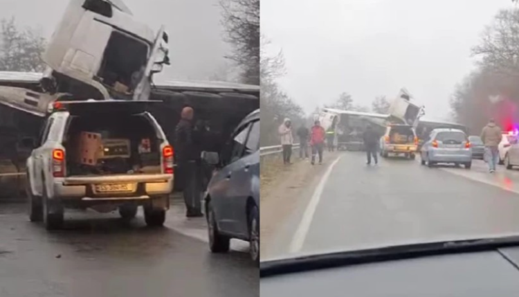 შეჯახების შედეგად, ტრაილერი გადაბრუნდა ავტომობილებს დაეცა.