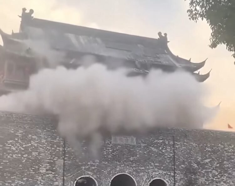 ჩინეთის ქალაქ ანჰუიში, ფენიანგის დოლების კოშკის სახურავი ჩამოინგრა. შენობის რესტავრაციის დასრულებიდან რამდენკმე კვირაა გასული.