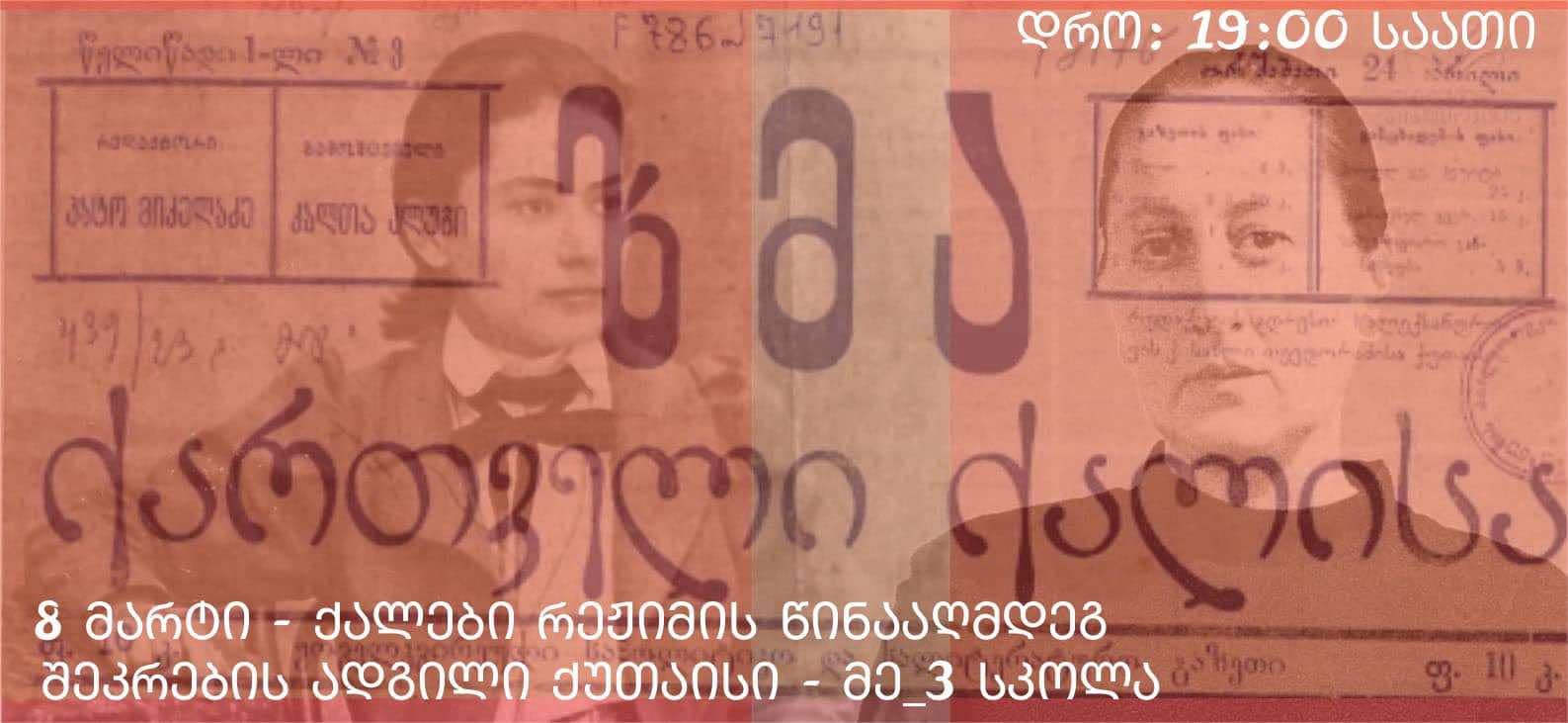 8 მარტს, 19:00 საათზე, შემოგვიერთდი ქუთაისში, მესამე საჯარო სკოლასთან, რათა რეჟიმს გავაგონოთ გაბრაზებული ქალების ხმა!” – ნათქვამია გავრცელებულ ინფორმაციაში.