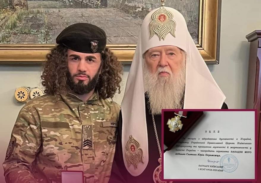 უკრაინის დაცვაში გამოჩენილი სიმამაცისა და თავგანწირვისთვის ქართველი მებრძოლი მირო ვანაძე უკრაინის პატრიარქმა დააჯილდოვ