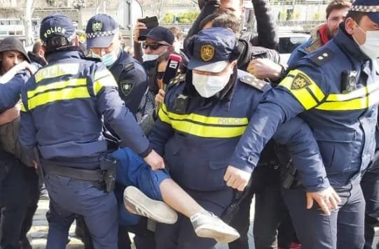 “ქართული ოცნების” ცენტრალურ ოფისთან, სადაც “ევროპული საქართველოს” ახალგაზრდული ფრთის და მოძრაობა საქართველოს წარმომადგენლები აქციას მართავენ, პოლიციამ რამდენიმე პირი დააკავა.