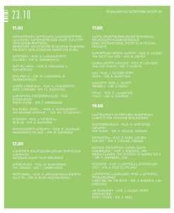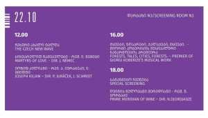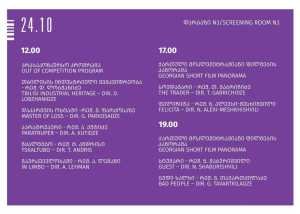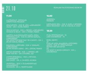 25 ოქტომბრის ჩათვლით  კინოთეატრ “საქართველოში” მაყურებელი მრავალფეროვან პროგრამას იხილავს. ფესტივალზე, საკონკურსო პროგრამის პარალელურად, ტრადიციულად ნაჩვენები იქნება ახალი და ძველი დოკუმენტური და მხატვრული ფილმები. გარდა ამისა, წლევანდელი გამოშვების – “ქვეყანა-ფოკუსის” ფარგლებში უჩვენებენ ჩეხური ახალი ტალღის და ბელგიელი კინემატოგრაფისტის, შანტალ აკერმანის კინოს.