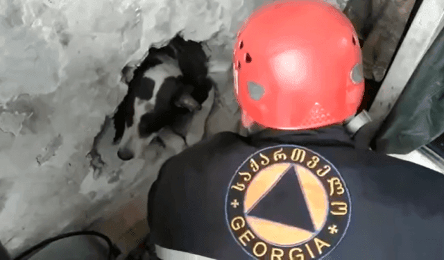 მეხანძრე-მაშველებმაბათუმში, აბუსერიძის ქუჩაზე შენობებს შორის გაჭედილი ძაღლი უვნებლად გამოიყვანეს.