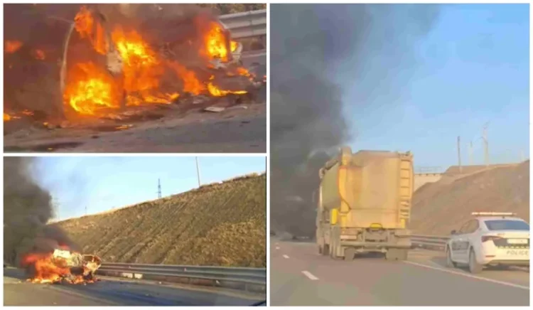 “მერ­სე­დე­სის” მარ­კის ავ­ტო­მო­ბილს უკ­ნი­დან და­ე­ჯა­ხა დიდი ტრა­ი­ლე­რი, რის შე­დე­გა­დაც მან­ქა­ნა აფეთ­ქდა და მთლი­ა­ნად და­იწ­ვა.