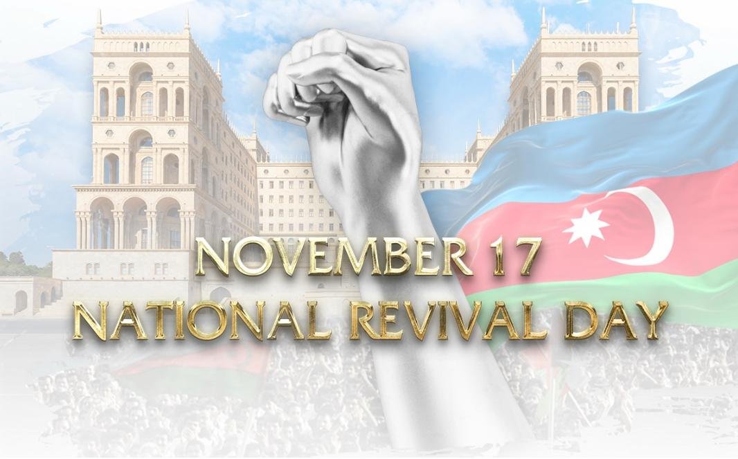 აზერბაიჯანის ისტორიის ერთ-ერთ ყველაზე ღირსშესანიშნავ მოვლენად — ეროვნული აღორძინების დღედ — 17 ნოემბერი ჩაიწერა. ამ დღის სულიერი საფუძველი, ფაქტობრივად, სათავეს იღებს გასული საუკუნის 60-იანი წლების ბოლოდან, როდესაც აზერბაიჯანს ხელმძღვანელობდა ეროვნული ლიდერი ჰეიდარ ალიევი. საბჭოთა იდეოლოგიის მკაცრი შეზღუდვების მიუხედავად, ჰეიდარ ალიევმა დიდი მნიშვნელობა მიანიჭა ეროვნულ და სულიერ ღირებულებებს, მეცნიერებისა და კულტურის განვითარებას და სწორედ ამ პერიოდში აზერბაიჯანი ნამდვილი აღორძინების ეპოქაში შევიდა. მისი ინიციატივით უცხოეთში სწავლა დაიწყო მრავალი ეროვნული სულის მქონე მეცნიერმა და ინტელიგენტმა, რომლებმაც მომავალში სამშობლოს სამსახურს მიუძღვნეს თავიანთი ცოდნა და ძალა. ჰეიდარ ალიევის მიერ შექმნილი სულიერი, ფსიქოლოგიური და ეკონომიკური საფუძველი საბჭოთა კავშირის დაშლის შემდეგ ხალხის საყრდენი გახდა.