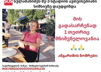 დაწვრილებითDetailsახალგაზრდა ქალს, მაყვალა სულამანიძეს მე-3 სტადიის ავთვისებიანი სიმსივნე (მარცხენა ლოყის, შიგნითა ზედაპირის ბრტყელუჯრედოვანი კარცინომა) დაუდგინდა. მას სასწრაფოდ ესაჭიროება ოპერაცია, რომელიც...