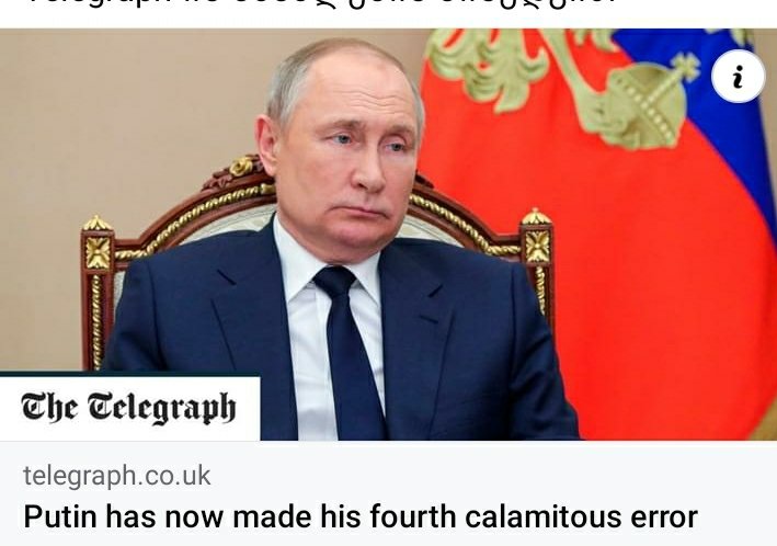 დაწვრილებითDetailsრა შეცდომები დაუშვა პუტინმა? საპასუხოდ, კონსტანტინე გამსახურდია ნიკოლოზ ნიკოლოზიშვილის ტელეგრამ არხის პოსტის ქართულად გვთავაზობს: ,,პუტინმა უკვე დაუშვა თავისი მეოთხე და...