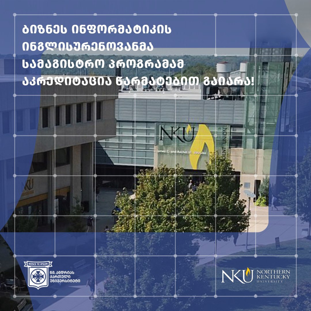 საქართველოს საპატრიარქოს წმ. ანდრია პირველწოდებულის სახელობის ქართული უნივერსიტეტის და ჩრდილოეთ კენტუკის უნივერსიტეტის ბიზნეს ინფორმატიკის ერთობლივმა ინგლისურენოვანმა სამაგისტრო საგანმანათლებლო პროგრამამ წარმატებით გაიარა აკრედიტაცია.